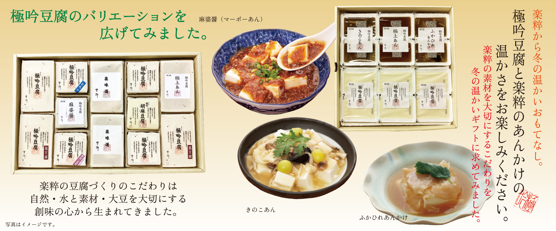 楽粹は、豆腐・湯葉を通して、真心のこもった大地の香りをお届けすべく、精進しております。